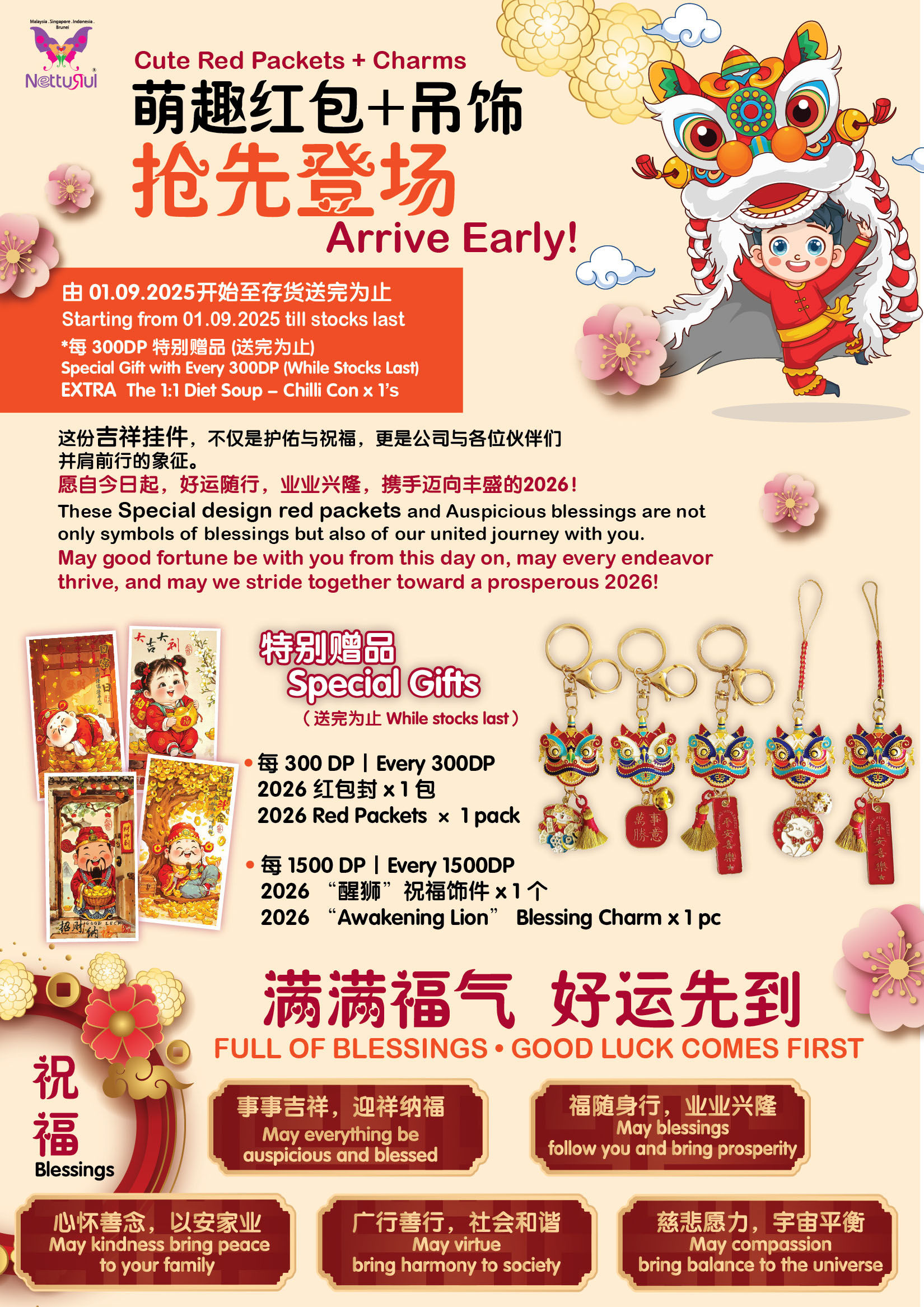 🩷 To thank you for your hard work and support throughout the year, and to bring blessings and protection earlier, we are delighted to distribute the specially designed 2026 Red Packets and Auspicious Lion Dance Charm starting from September 1, 2025. 😍😍