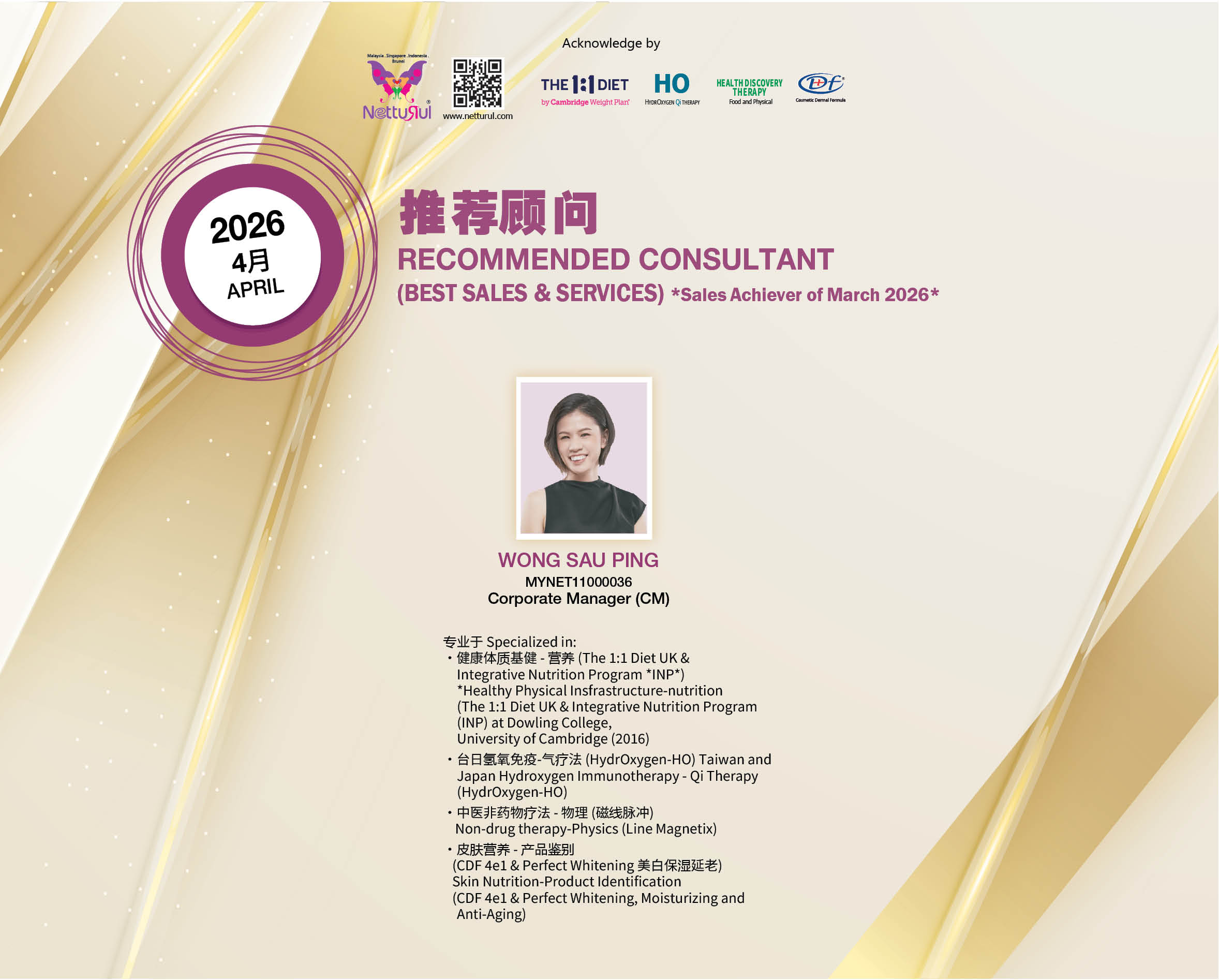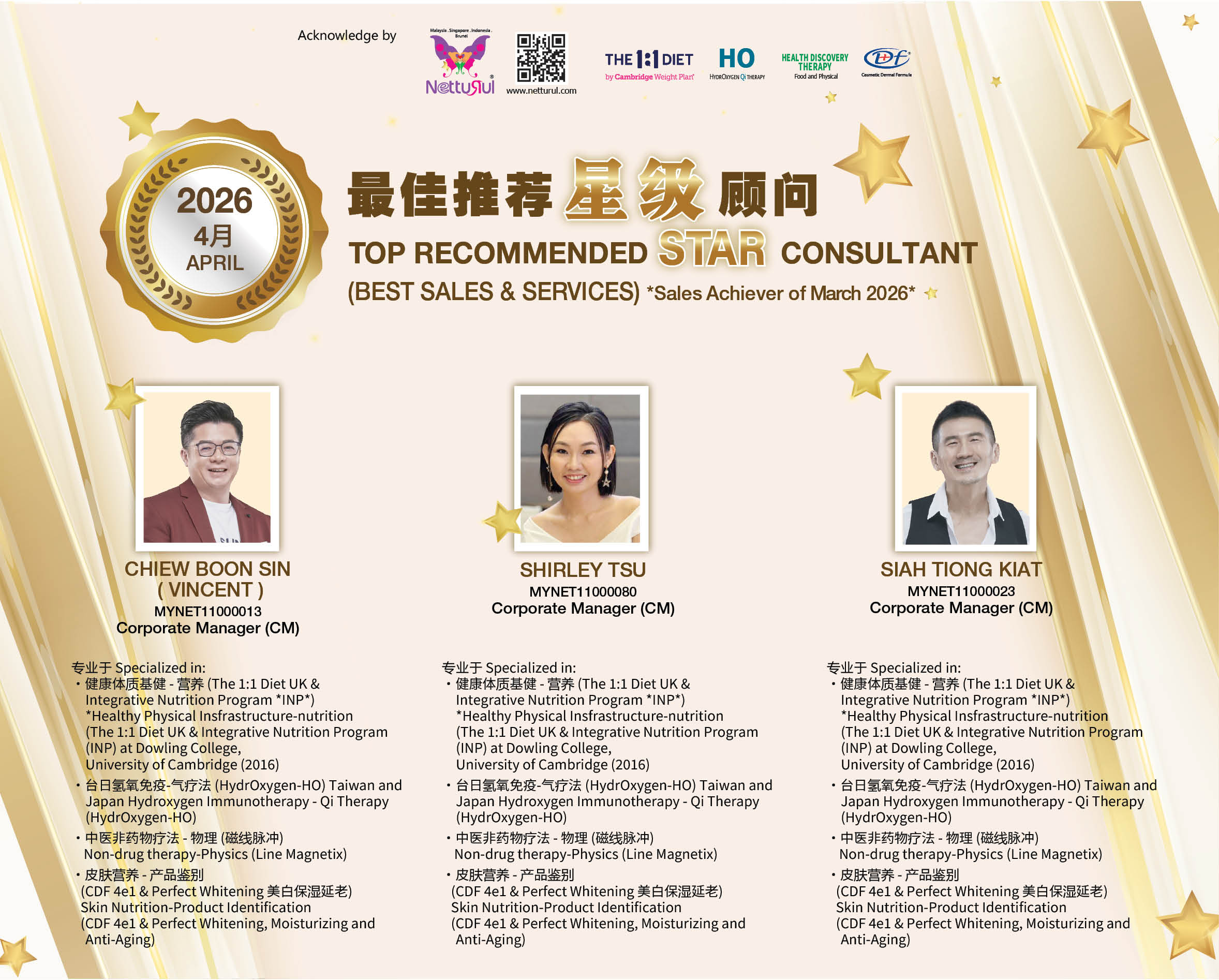 👏🏻👏🏻 Warmest congratulations on being awarded the “Top Recommended Star Consultant” and “Recommended Consultant” for April 2026! 🎊