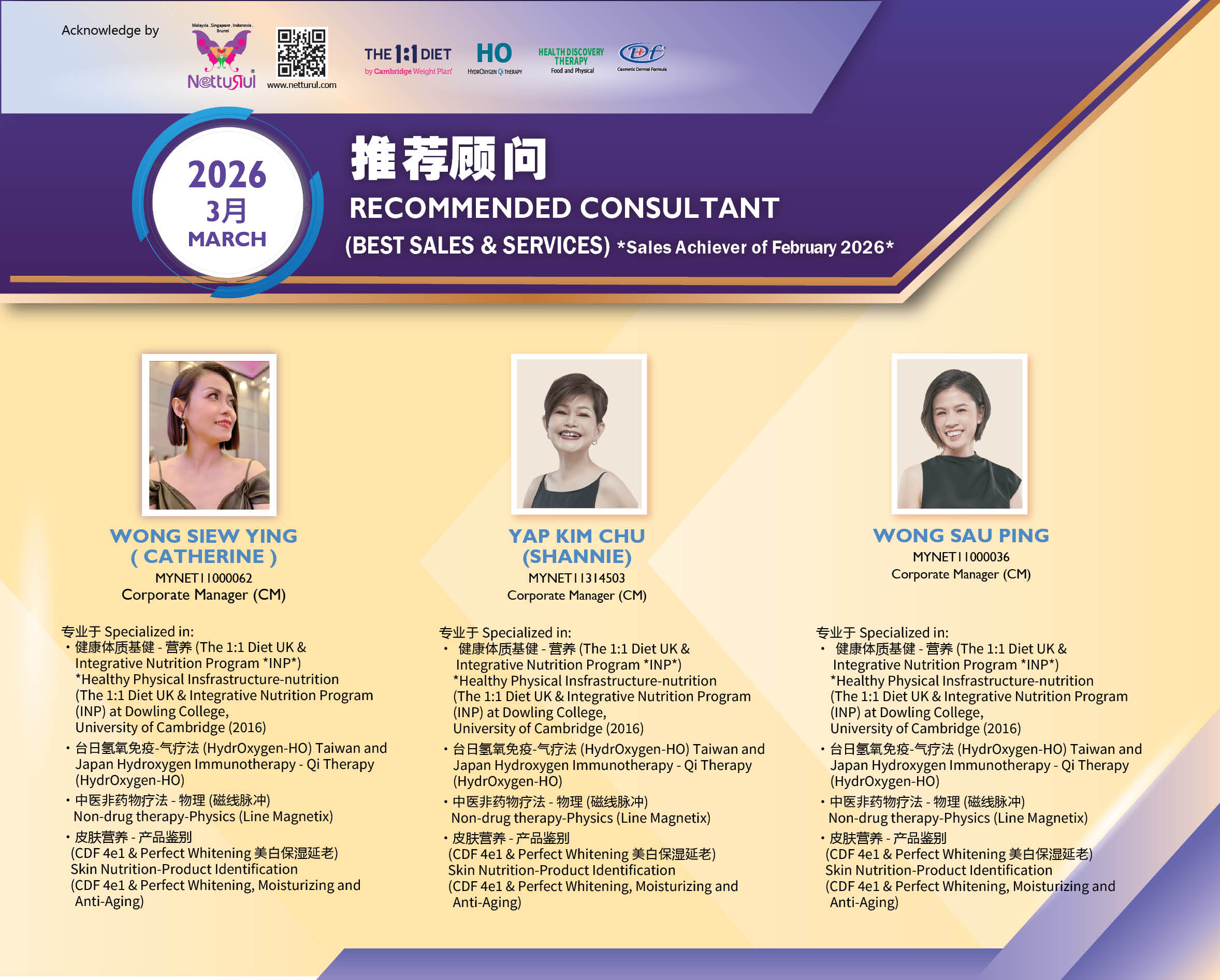 Congratulations on receiving the “Top Recommended Star Consultant” and “Recommended Consultant” Awards for March 2026. 🎊 ✨This achievement reflects your professionalism, dedication, and commitment to excellence. ✨ Through a safe and effective non-medication approach, you have earned the trust of your clients while promoting a healthier lifestyle. 💖 Congratulations and we wish you continued success.