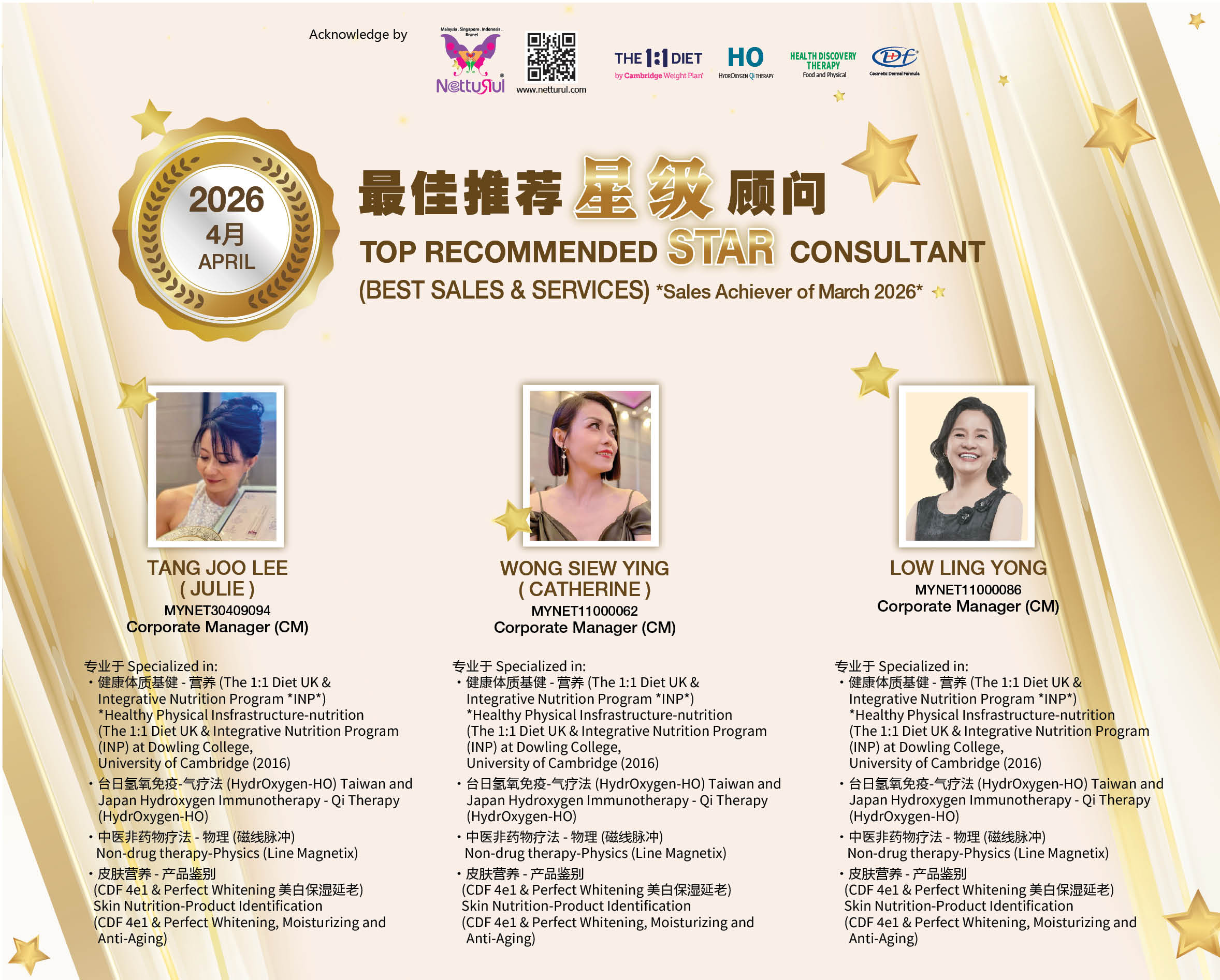 👏🏻👏🏻 Warmest congratulations on being awarded the “Top Recommended Star Consultant” and “Recommended Consultant” for April 2026! 🎊